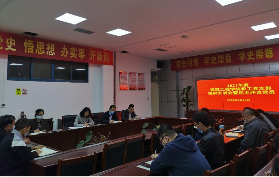 3月16日晚,2021年度日韩无码不卡教工党支部组织生活会暨民主评议党员大会在汉梁楼BIM会议室召开。根据要求,支部委员会作了认真准备,广泛征求了基层干部群众的意见和建议,进行谈心谈话。本次会议应到26人,实到23人,会议由日韩无码不卡教工党支部书记刘迪主持。