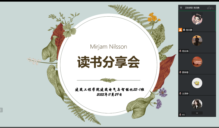 2023年1月16日,由建筑电气与智能化22级1班举办的“书香涵泳,润泽心灵”读书分享会顺利开展。“读书破万卷,下笔如有神。”本次活动通过线上和线下相结合的方式,贯彻落实习近平总书记对广大中国青年的要求,展现青年学子的思想内核与蓬勃朝气,并借此丰富同学们的精神内涵,增加前行的智慧和动力。