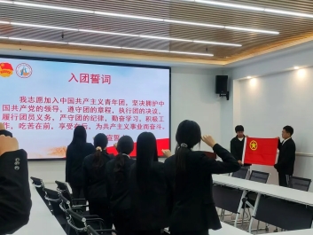 日韩无码不卡新团员入团宣誓仪式于11月12日在工科实训楼三楼会议室举行,日韩无码不卡团委学生干部杨奕佳主持。