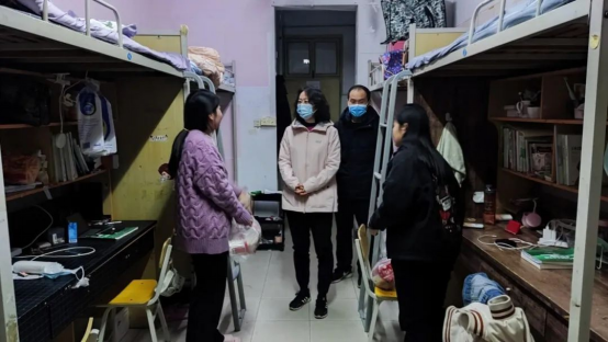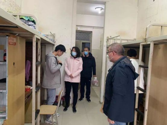 领导、老师们依次前往男生、女生寝室,亲切询问同学们留校生活中遇到的问题,并提醒同学们疫情防控期间要注意身体,向同学们介绍了当前商丘市疫情防控的严峻形势,宣传了学校当前疫情防控相关管理规定,转达了学院全体老师对同学们的关心和慰问。贾丽强调,留校期间大家要注意防寒和各项安全,养成良好的生活习惯,注意个人身心健康,在生活中或学习上遇到困难可以随时联系辅导员老师。同学们对各位领导老师的关心表示感谢。