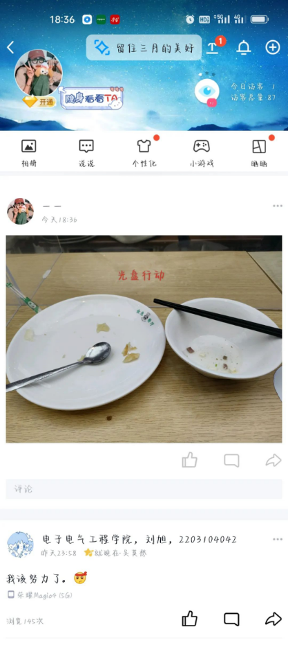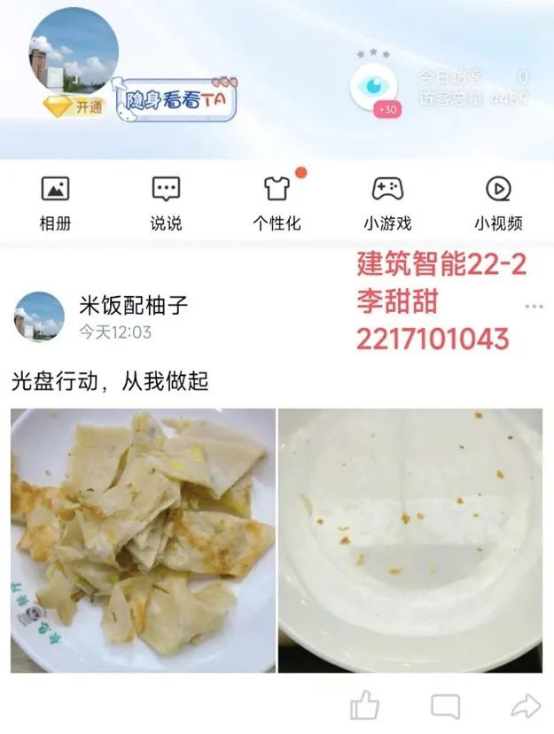 本次活动在线上举行,同学们纷纷积极响应,用拍照的方式来记录自己节约粮食的日常。这一活动,充分调动了同学们节约粮食的积极性,让食堂浪费粮食现象有明显减少。达到了此次活动预期目的,让节约粮食行为得以继承和发展。
