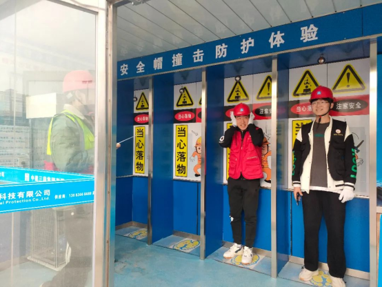 首先,在中建三局项目成员的带领下,大家来到休息区进行参观,提醒大家注意安全。在介绍艺术中心项目背景后,项目成员分别从房屋结构、抹灰工艺、给排水管道处理等方面,以建筑学、土木工程、建智电气与智能化三个专业为切入点,全方位、多角度为同学们拓展专业知识,并带领大家学习钢筋绑扎技术。最后,项目成员带领大家参观消防安全体验区、样品展示区、劳动保护体验区、安全体验区、综合用电体验区五个施工基本场区,建筑主体结构工艺样板以及顶层房屋构造样板。