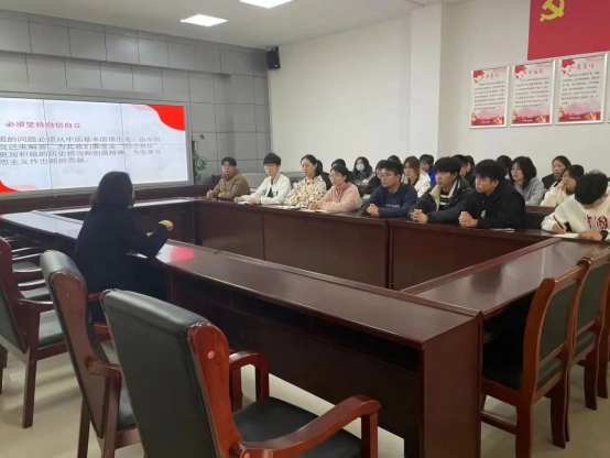 首先,贾丽肯定了学生积极向党组织靠拢的热情,以党的二十大报告精神为主线,向同学们讲述了中国共产党党史,并引导教育学生将马克思主义思想与中国化时代化相联系。贾丽明确指出入党积极分子们必须做到坚持人民至上,明确“四个自信”,坚持科技创新以自立。在思想抱负上,贾丽强调各位积极分子必须坚持守正创新,辩证统一看待“正”与“新”;必须坚持系统观念,加强前瞻性思考,全局性谋划;必须坚持胸怀天下,为中华民族谋复兴。最后,贾丽强调青年一代的重要性,勉励青年领会党的创新理论并武装头脑,指导实践,推动工作,创造青年价值。