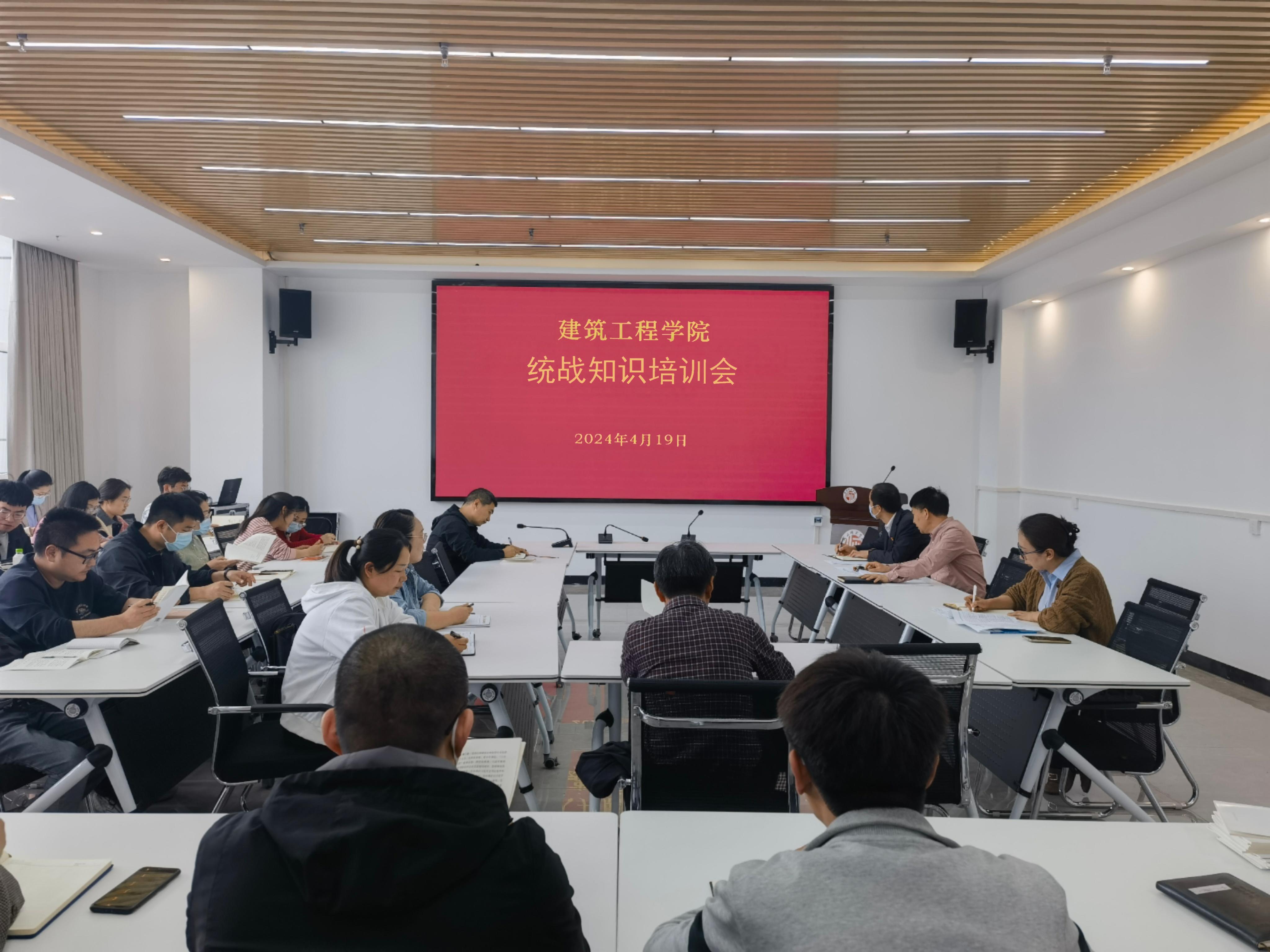 2024年4月19日,日韩无码不卡在工科实训中心会议室开展统战知识专题培训会,全体教师参加,会议由党委书记孔祥伟主持,统战委员张向萍做知识培训。