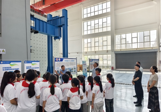 随后,小朋友们参观了结构实验大厅和结构模型实验室。高大的加载设备、复杂的钢结构框架和正在进行的抗震实验引起了孩子们的阵阵惊叹。高永辉老师用通俗易懂的语言讲解了“楼房如何抵抗地震”“桥梁为什么能承重”等科学原理,并通过模拟演示让同学们直观感受到建筑结构的奥秘。“原来盖房子就像搭积木,但每一块‘积木’都要经过精密计算!”
